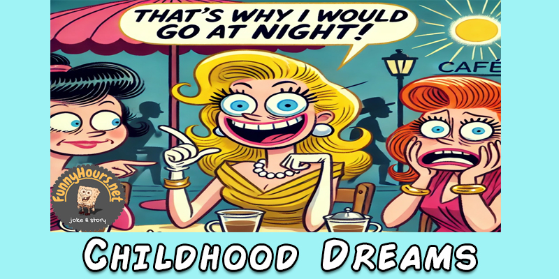 A blonde, brunette, and red head are all talking about what their dreams were when they were kids. The brunette says, “I wanted to be a princess. I was so dumb.”